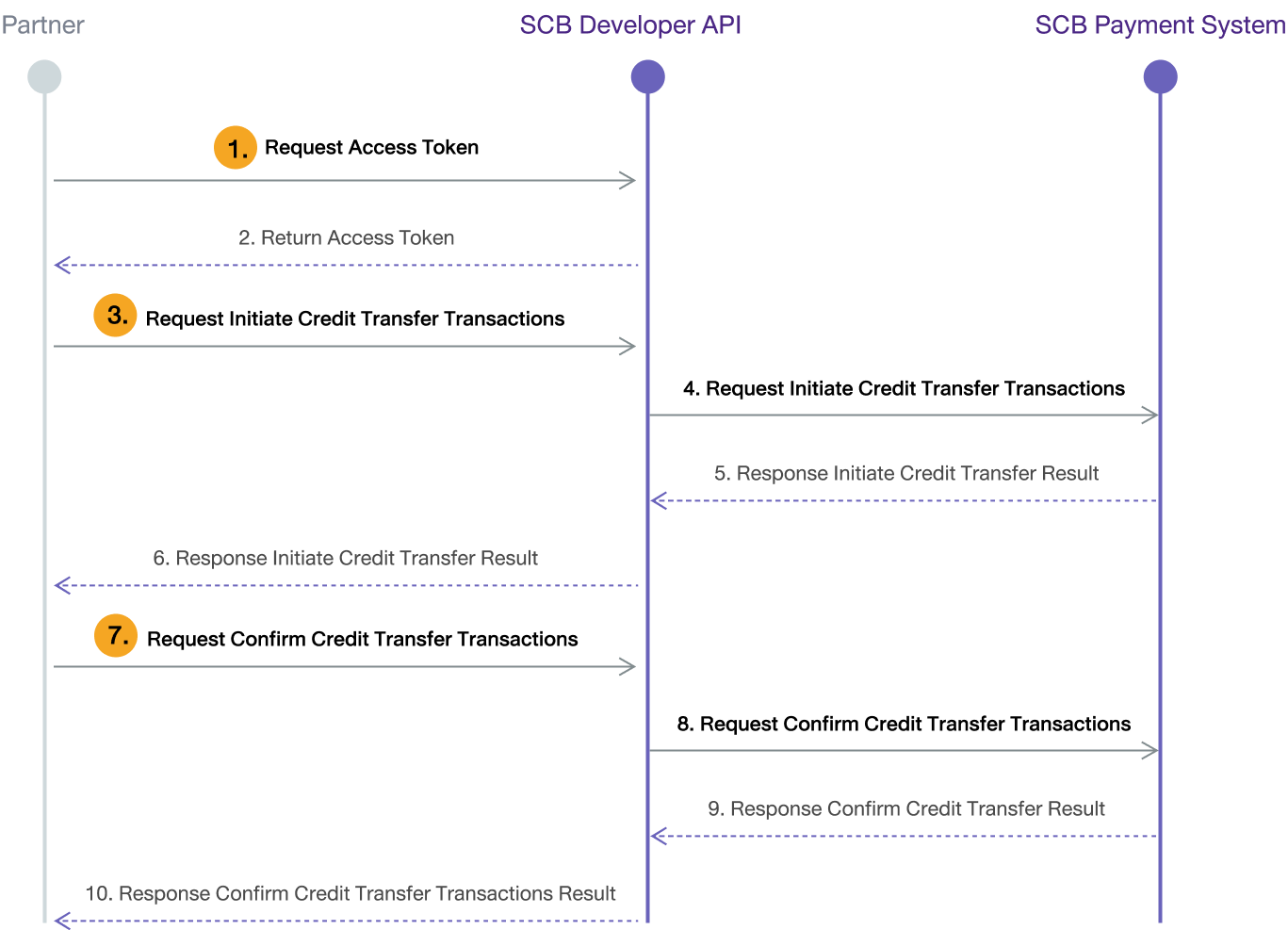 | 3 | Initiate Credit Transfer Transactions | POST /v1/payment/transfer/fcd/credit/initiate |